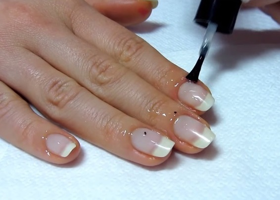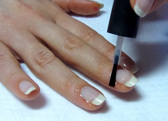 At this stage, it is possible to macerate the nails, which is especially good for rough cuticles. You can use warm soapy water or lotion. If soaking is relevant, this procedure takes no more than 4-5 minutes, making sure that the water in the tank is not cold. For further work, wipe your hands dry with a towel.