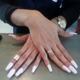 - "Ballerina" - A new direction in the design of nails, in which the edges are directed to the center and cut off by a flat horizontal line. This form is subject to mechanical damage and twisting on thin nails.