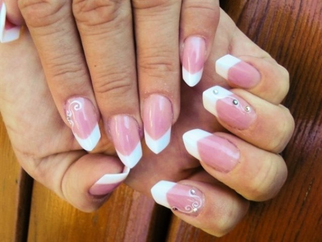 - "Age" - A modern trend in the nail industry, which is made on the basis of French manicure. Experts cut out a square shape and make a sharp wedge on the top. Molded corners can be of different types.