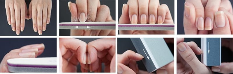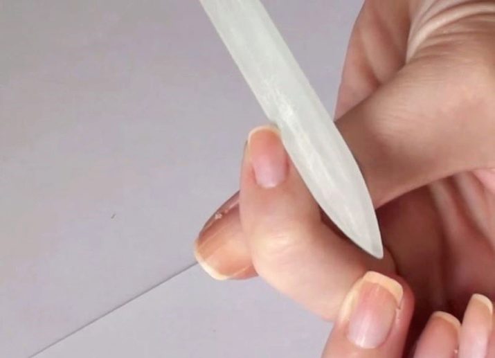 Filing the nail in one direction will prevent delamination of the structure of the horn plate. For natural nails, you must purchase a nail file from glass or rubber. Thin nail plates are treated with a ceramic instrument with fine dusting. The use of a metal nail file can lead to delamination of the plate structure due to an increase in the temperature of the tool during work. Experts consider glass or crystal as universal working tools that will remove all irregularities and stains.