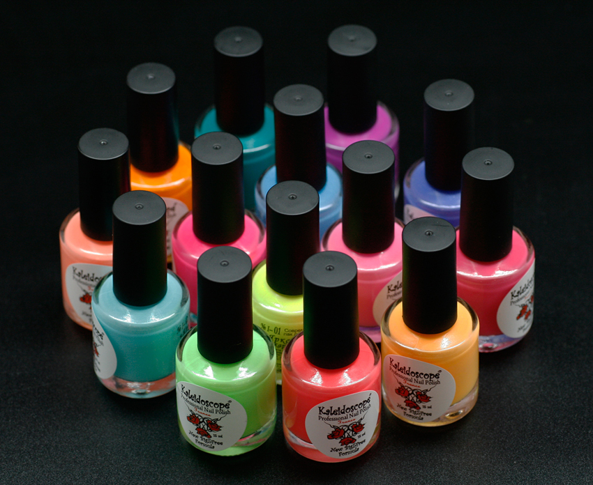 - gel varnishes in black, yellow, neon, orange;