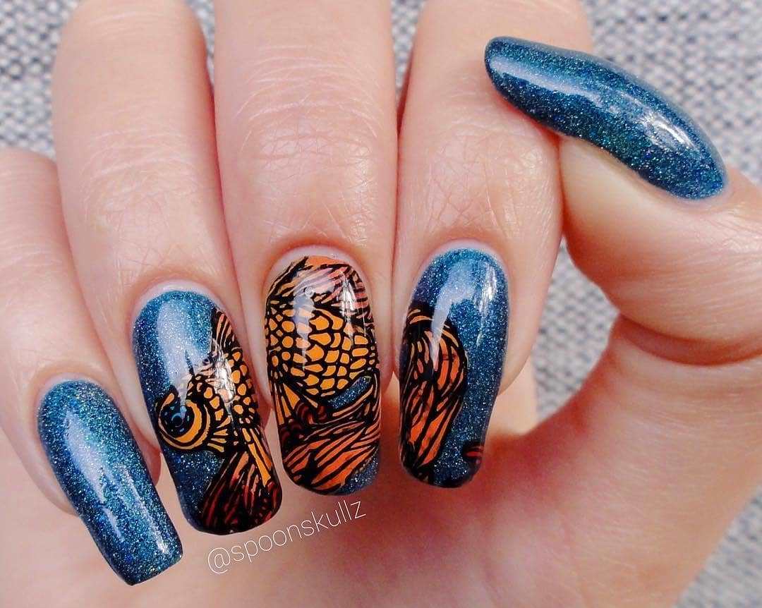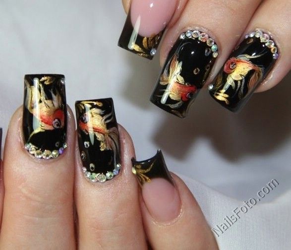 Currently, the masters offer the most diverse nail design with the image of goldfish. Among them are the brightest and most popular prints that you can try to make yourself at home.