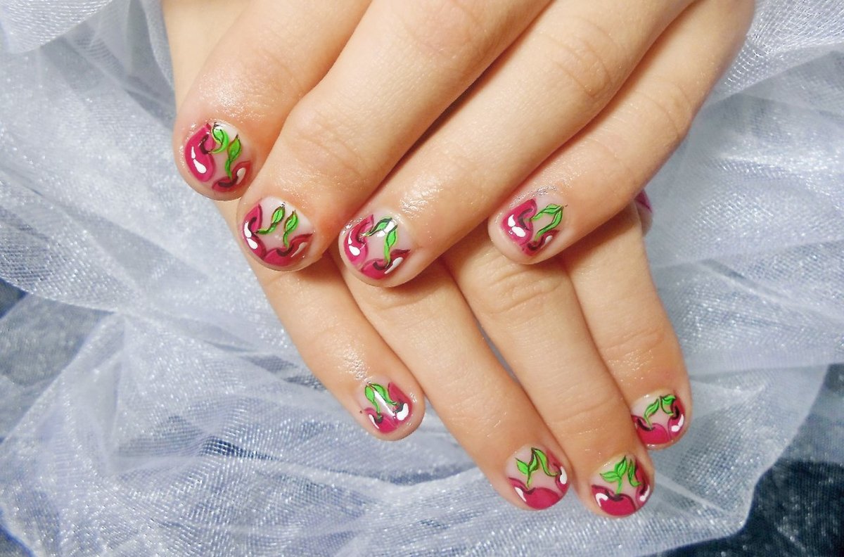 Modern technologies allow you to choose different methods and materials with which you can apply a certain pattern on the nails. For the image of cherries uses several versions.