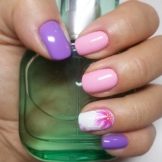 - Pink and lilac ombre with acrylic powder and purple contrast will allow you to declare your individuality, highlighting a woman from the crowd.