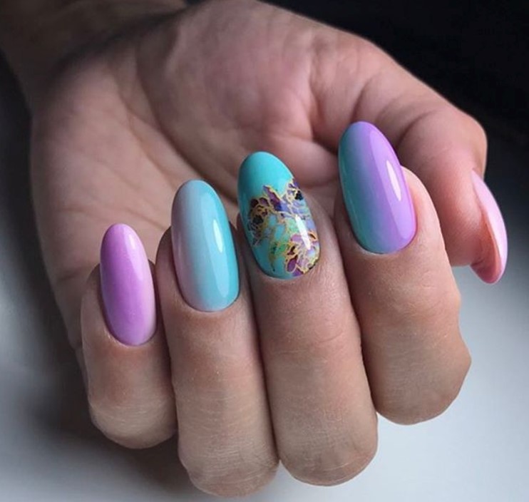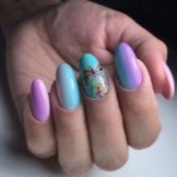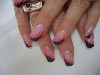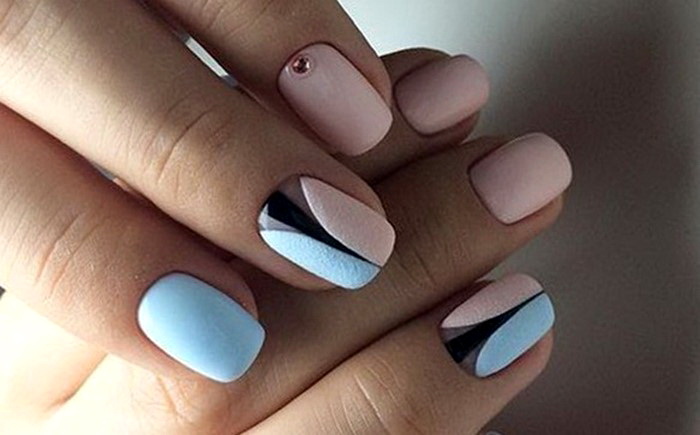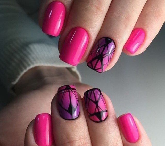 - Pink-blue design in the negative space technique with black contrast will allow to bring a note of freshness into the everyday look.