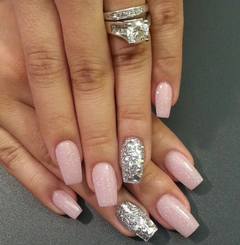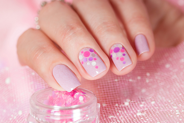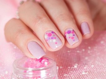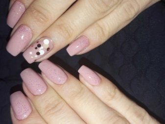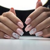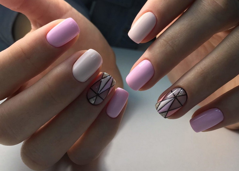 Despite the fact that this decor is not a novelty, in the new season it will be one of the trendy decorative methods of nail design. It will be fashionable to decorate nails not only with various circles in related or contrasting pink pigment colors. Fashion offers to make accent nails with various squares, triangles, polyhedra. For lovers of marshmallow designs, she saved up confetti in the form of stars and hearts.