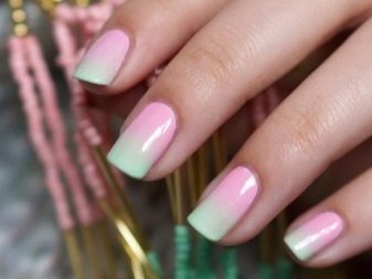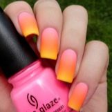 Pink nails using gradient technique will look beautiful if you use several shades of pastel to cover it. Such design will be especially relevant for the summer, and fashion trends are sure that the transition of one tone to another today should be as smooth and natural as possible. The gradient in related pink tones, covered with a matting effect top, will also look gorgeous.