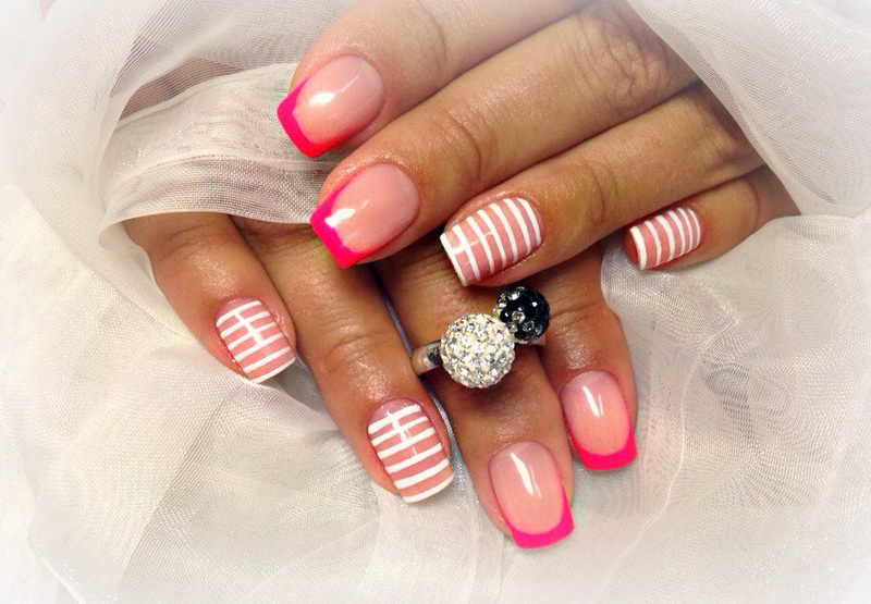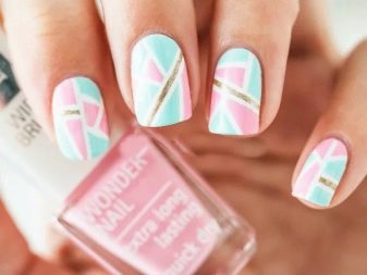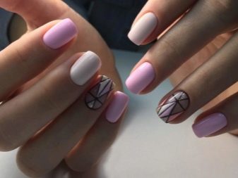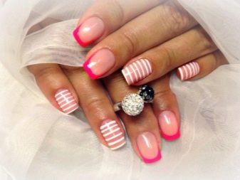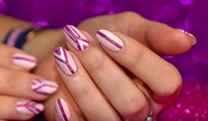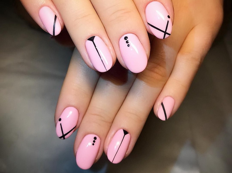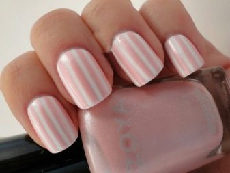 Subject strips will be one of the trend. In this case, the drawings can be made in contrasting tones on a pink background or in a monochromatic companion lacquer. You can paint them vertically, diagonally or across the nail plate. At the same time, its length should be taken into account: vertical lines look better on short nails, while cross lines will visually make the nail even shorter.