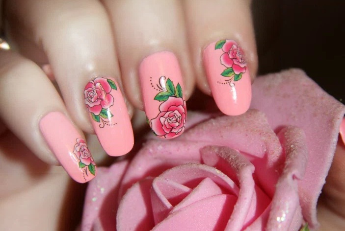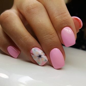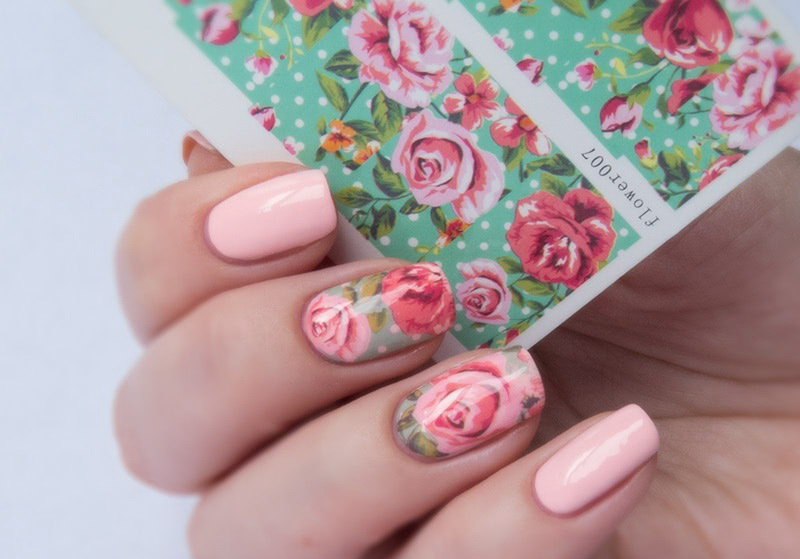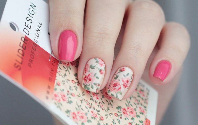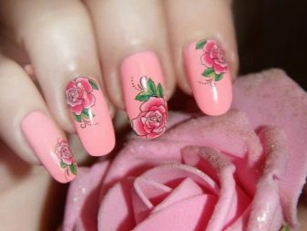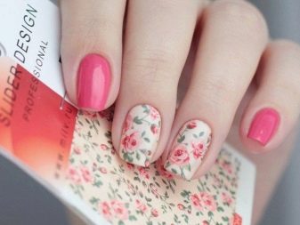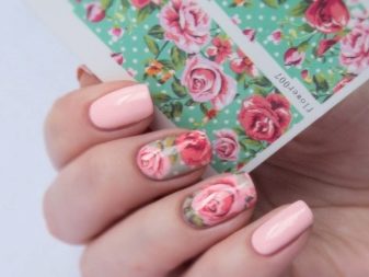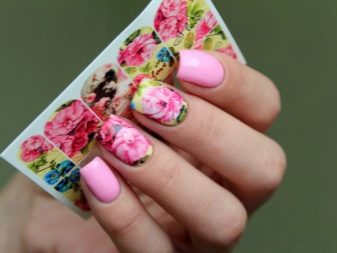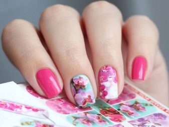 This technique allows you to beat the affiliation of design to a particular season. However, you need to choose stickers for pink manicure correctly. The times of complex decor are a thing of the past: when choosing a drawing of the same flower, you need to try so that it does not completely cover the nail plate. It is important to leave the effect of lightness, which is impossible when the entire nail is painted.