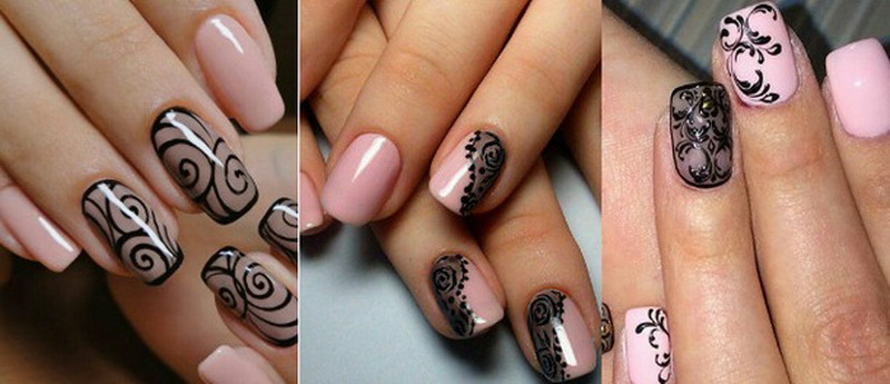 Those who are tired of traditional techniques will like the idea of a manicure called “veil”. A translucent base with a pattern painted with acrylic paint will look incredibly tender and feminine. The whole essence of this technique is to achieve a translucent base, for which use a transparent gel polish and a few drops of pink pigment. The darker the tone of the original color, the more pronounced the effect of a veil or nylon stockings.