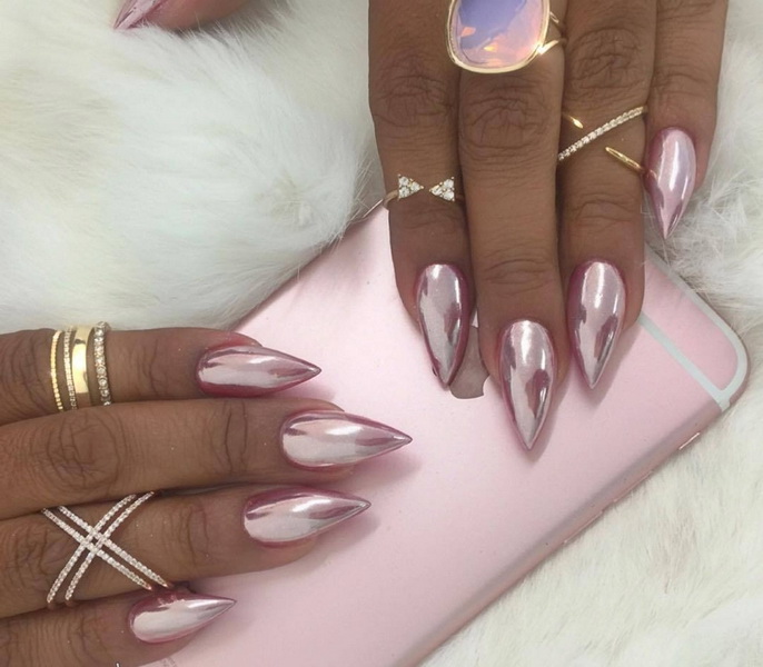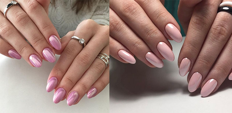 The first jewelry is a special powdery substance with a fine sheen, which is rubbed into the nail plate, achieving the desired effect. Today rubbing can have a lot of effects, due to which a pink manicure can be not only voluminous, but also iridescent with all the colors of the rainbow. Manicure foil also today has a variety of varieties, of which every woman can choose the desired option. Especially popular will be island-type coatings and designs with holography.
