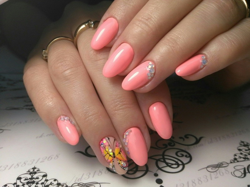 Fans of straight nails are recommended to at least slightly round off the line of the cut along the sides. This not only improves the shape of the nail plate, but also gives it naturalness, which cannot be said of the categorically straight nail cut. Almond-shaped nails with a slightly pointed edge return to fashion. At the same time, outwardly, it should not be too elongated due to the length.