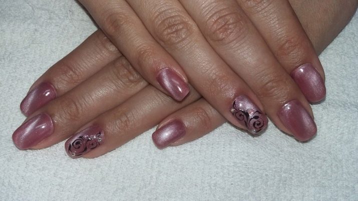 Manicure is complicated with the use of magnetic varnishes, known as "cat's eye" coatings. Today, these lacquer products are distinguished by a wide variety of tones and textures, which makes it possible to get not just a bright and unusual design, but a rather fresh solution that demonstrates the versatility of the main pink background. Surprise was the return to trends of Craquelure coatings, characterized by the effect of cracks. Today it is fashionable to combine such designs with gold or silver, achieving the unusual appearance of a manicure.