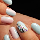 The owners of the “rounded square” are recommended to complement this type of manicure with kamifubuki, rhinestones and rubbing on merging tones. Short nails will visually become larger, and long ones will turn into a real “canvas” for “nail art”. Here you will be able to display geometric patterns, create acrylic painting, lace “cobweb”, beautifully lay sequins.