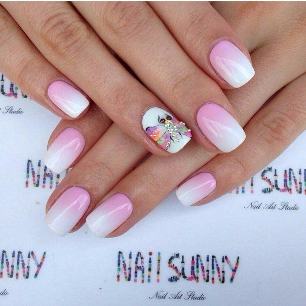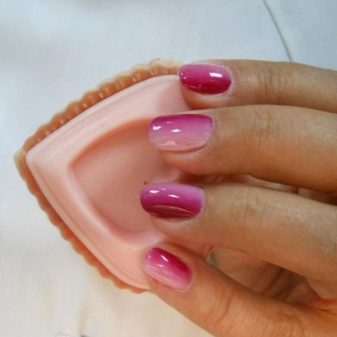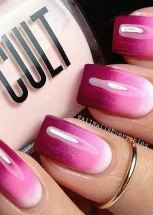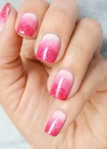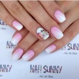 Gradient view of manicure gives endless scope for creativity. Masters create a lot of interesting transitions, using pink lacquer colors in their work, as well as a palette of contrast or similar in tint.