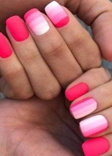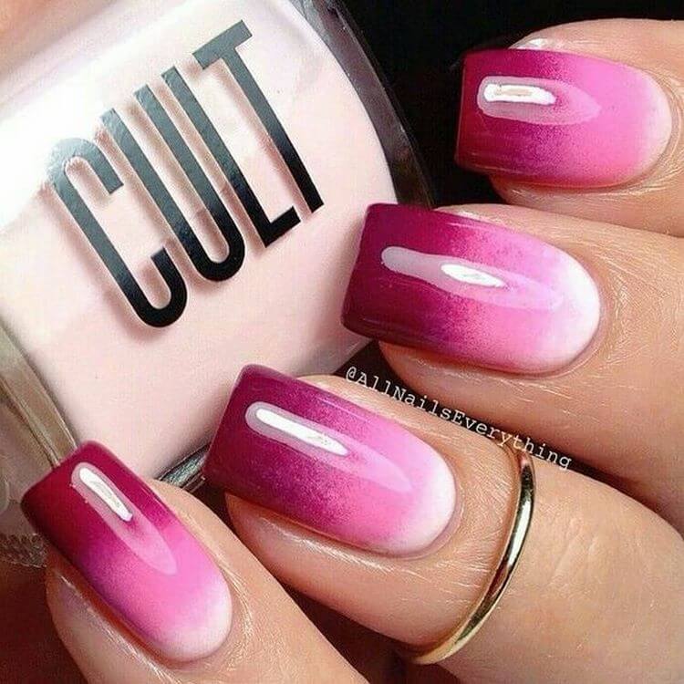 The secret of the gradient manicure lies in the fact that it fits in equally stylishly both in the image of a young beauty and an elegant age seductress. It is important to choose the right combination of pink palette and make a spectacular sharp or smooth transition of shades.