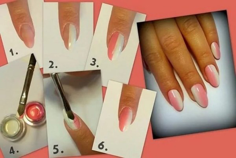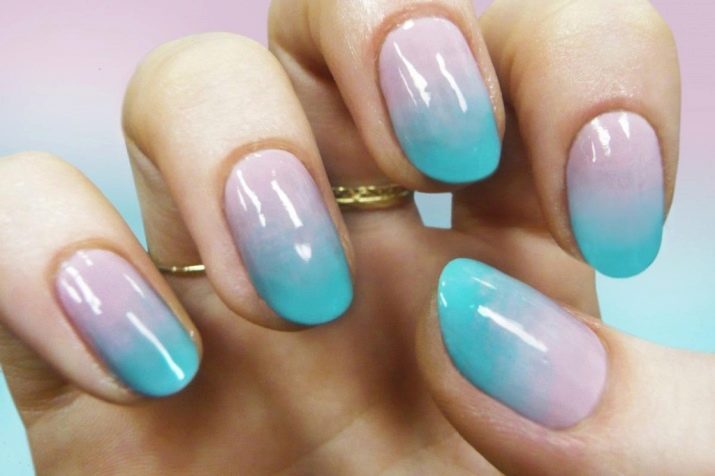 Starting from the moon, step by step, with small strokes, it is necessary to stretch the pigment and occasionally polemize the result. At the very end you need to fix the work of the finishing coating. To simplify the modern ombre on the nails, many masters use airbrushing. The tool speeds up the process of applying a gradient and makes the result perfectly neat.