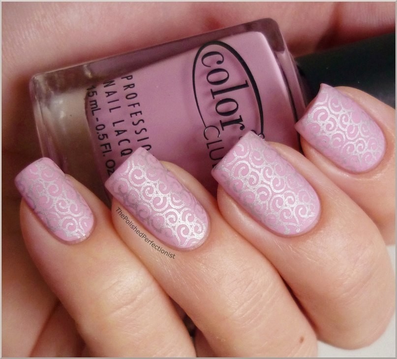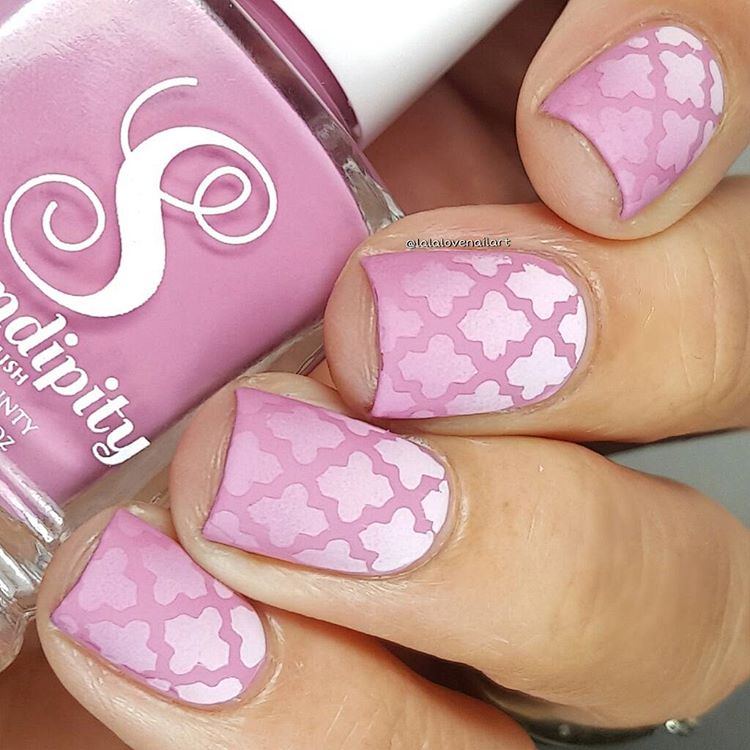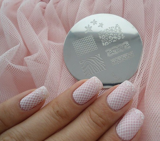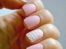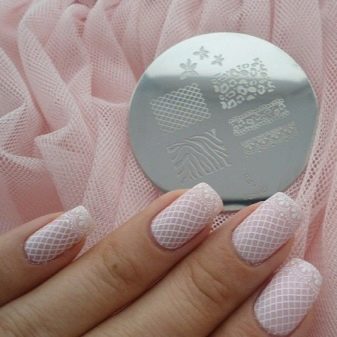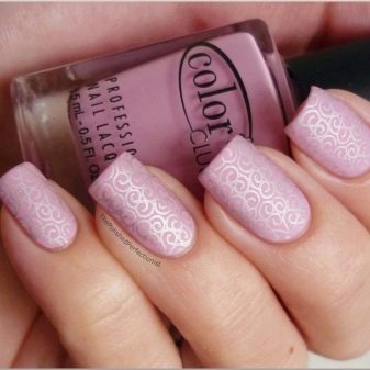 If you want tenderness, you can make a design with a lace pattern. In this regard, the best option to supplement the technology will be stamping. Stamps with different patterns and ornaments, made in a contrasting color on matte pink, will look gentle and professional.