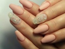 As for the sparkles, decorations with rhinestones and shimmer supplements of matte manicure, this design is good for evening bows. The abundance of shine is not suitable for every day, it is better to use rubbing, giving accent nails an unusual texture.