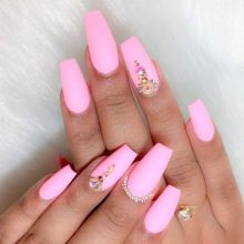 Pink manicure with a matte texture opens up a lot of possibilities for design. It is suitable for most well-known nail design techniques, and also allows for various combinations between them. The simplest, but rather noble design option is the design of all nails with a matt varnish. A classic manicure without a pattern or decor will look spectacular, bringing notes of nobility and aristocracy into the female image.