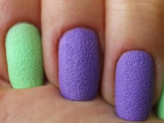 Original texture with a frosted effect can be obtained using acrylic powder. In this case, the surface will seem not only matte, but velvety and spectacular. If you use a special transparent powder, you can achieve the effect of "velvet sand". Powder can be ordered online or purchased at a specialty store, working with it using the basic manicure technique.