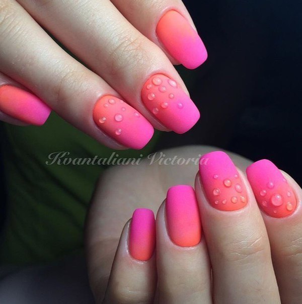 Matte manicure in gradient technique looks super beautiful. In this case, the design can be made of several related shades, which will give a pink manicure a variety of facets. If you want a game of contrasting tones, you can combine the pink color with hints of pastel.