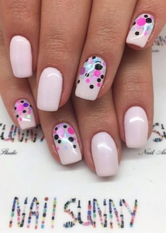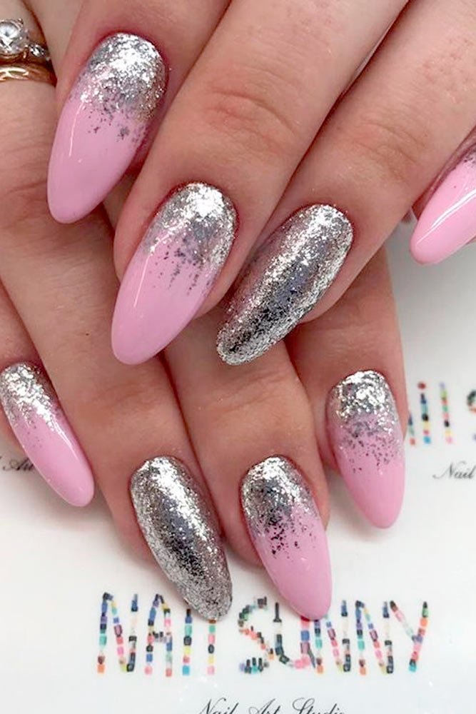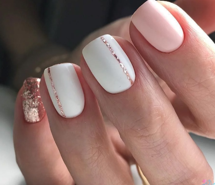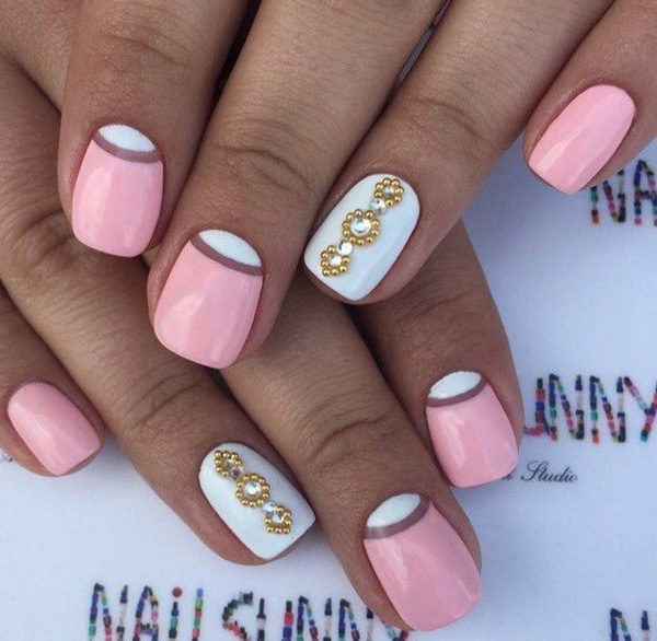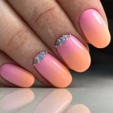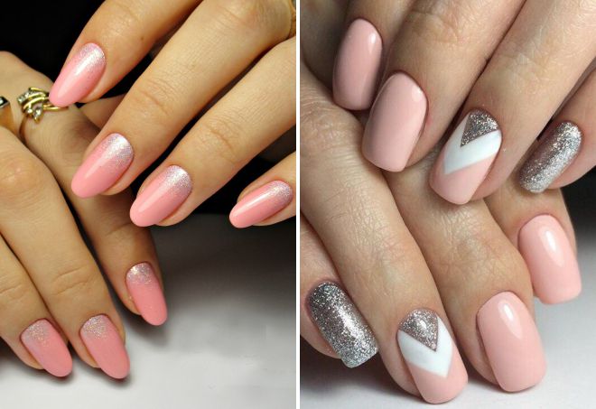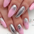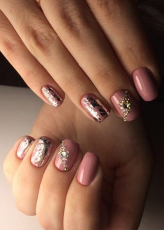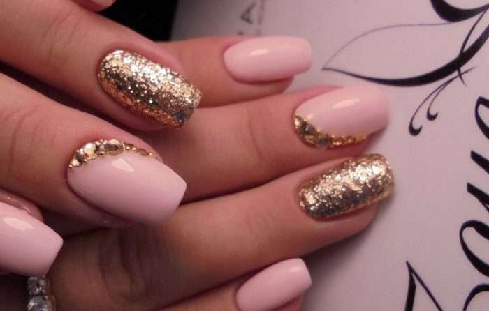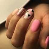 - With silver and gold. The luxury and wealth of these shades speaks for itself. Their use in manicure makes it more alive. Playing in the rays of the sun or reflecting off the lamps, shades will create interesting play and glow. Pink background will not conflict with them, but will be a great addition. Just choose one of these two radiant colors, and then you risk overdoing.