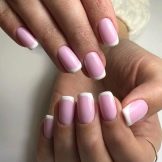 The name is very indirectly related to the celestial body. This name he received because of the specific name of the part of the nail. Near the base there is a small area that has a different shade and the shape of a crescent, which is what is called the lunar one. When manicure in this technique, it also stands out in a different color. This may be white or another shade of pink, and may remain completely transparent.