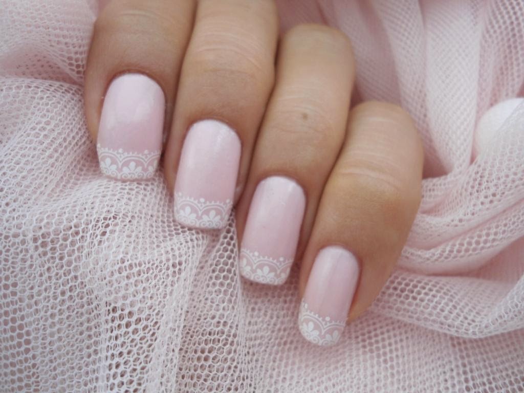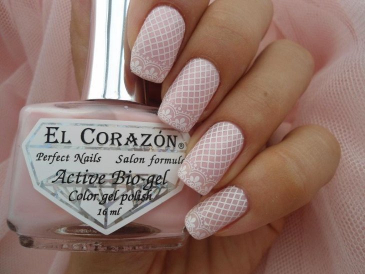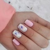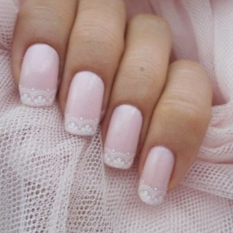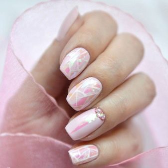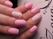 - Wedding. The gentle and airy image of the bride may well complement the pink manicure. Suitable as a jacket and design with lace. Rhinestones will also look appropriate. The main thing - do not overload the image. Nails should complement it, and not be the main focus. All attention should be focused on the happy eyes of the bride.
