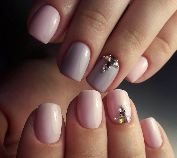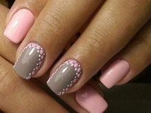 - With gray. Pink and gray are a very fashionable combination. The main thing is to choose the right shades. Prefer light gray and delicate pink. Such a duet will look advantageous on the nails.You can try and more contrasting pairs, but do not overdo it, otherwise it will look ridiculous.