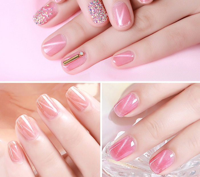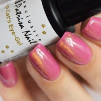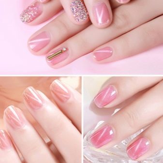 You should choose a fairly rich shades of pink, otherwise the effect will not be so noticeable. The main thing is for your master to find the magnetic powder of the desired shade. In most cases, manufacturers prefer dark shades, since the effect on them is more noticeable.