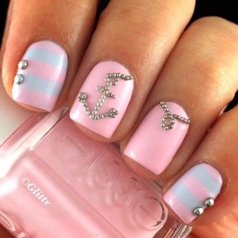 - Vacation at sea. Marine design has already become a classic. Its traditional colors are red, blue and white. To make a zest, use pink instead of red, and blue instead of blue. You will see how to transform the picture, the nails will be more elegant and concise.