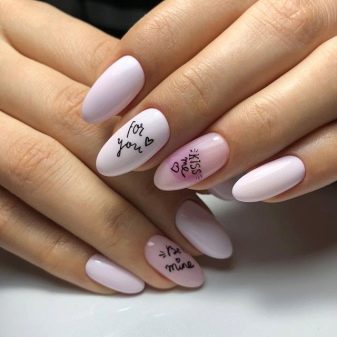 - Daring and youth. Girls who manage to learn and spend time with friends, and go in for sports (art) simply need the same dynamic and vibrant manicure. An option can be bold inscriptions in a foreign language, bright prints and unexpected combinations. In this case, the pink background will balance this brightness and riot of colors.