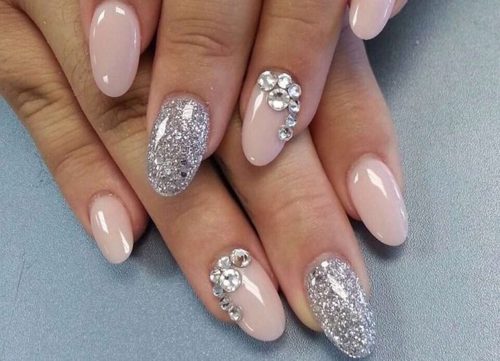 They can be woven into patterns and patterns on the nail or make up a certain picture themselves. Do not overdo it with their number, and then you will become like a New Year's toy. If you want the nail plate to be completely covered with shiny stones, then do it only on the nameless. It'll be enough.