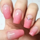 Significant place in the list of fashion trends is given a pink ombra with the use of sparkles. To get the effect of scattering of sparkles, you should pour out the "star dust" on the nail plate until the varnish has dried. Due to this, the glitter will firmly lock onto the surface and will not crumble.