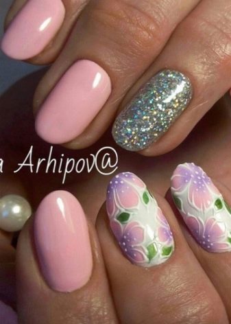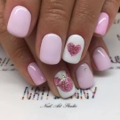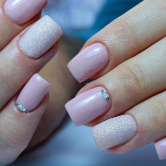 Beautiful pink manicure can be obtained by different shades of the palette with the use of add-ons. Masters use sparkles, rhinestones, powder colors of gold or silver while working. Such ideas will be well combined with long and short nails.
