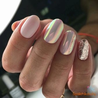 Very elegant manicure can be obtained with the help of rub. Visually, the tool resembles powder.Adding a mirror or multi-colored powder to the main tone will make the manicure more effective and more interesting.