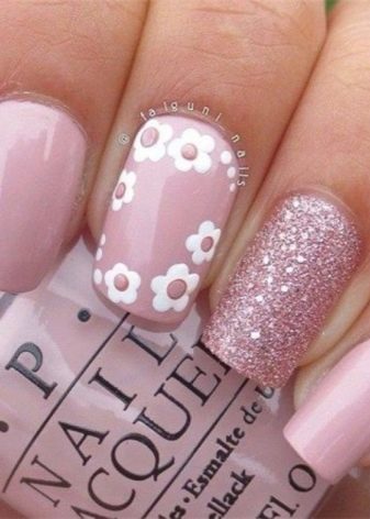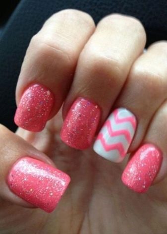 When choosing a pink manicure with sparkles, it is advisable to study examples that will help you decide on the future. The presented options can be used as a basis and supplement them with your own ideas.