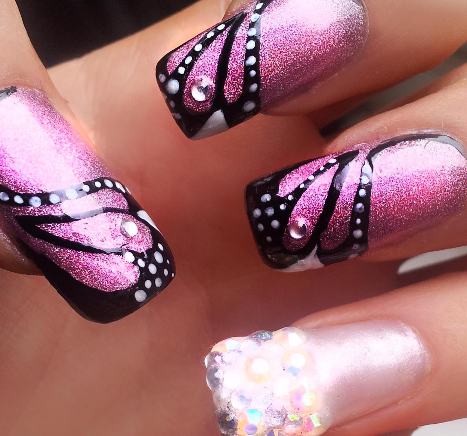 Using the cat's eye or polka-dot technique is ideal for combining black and pink.