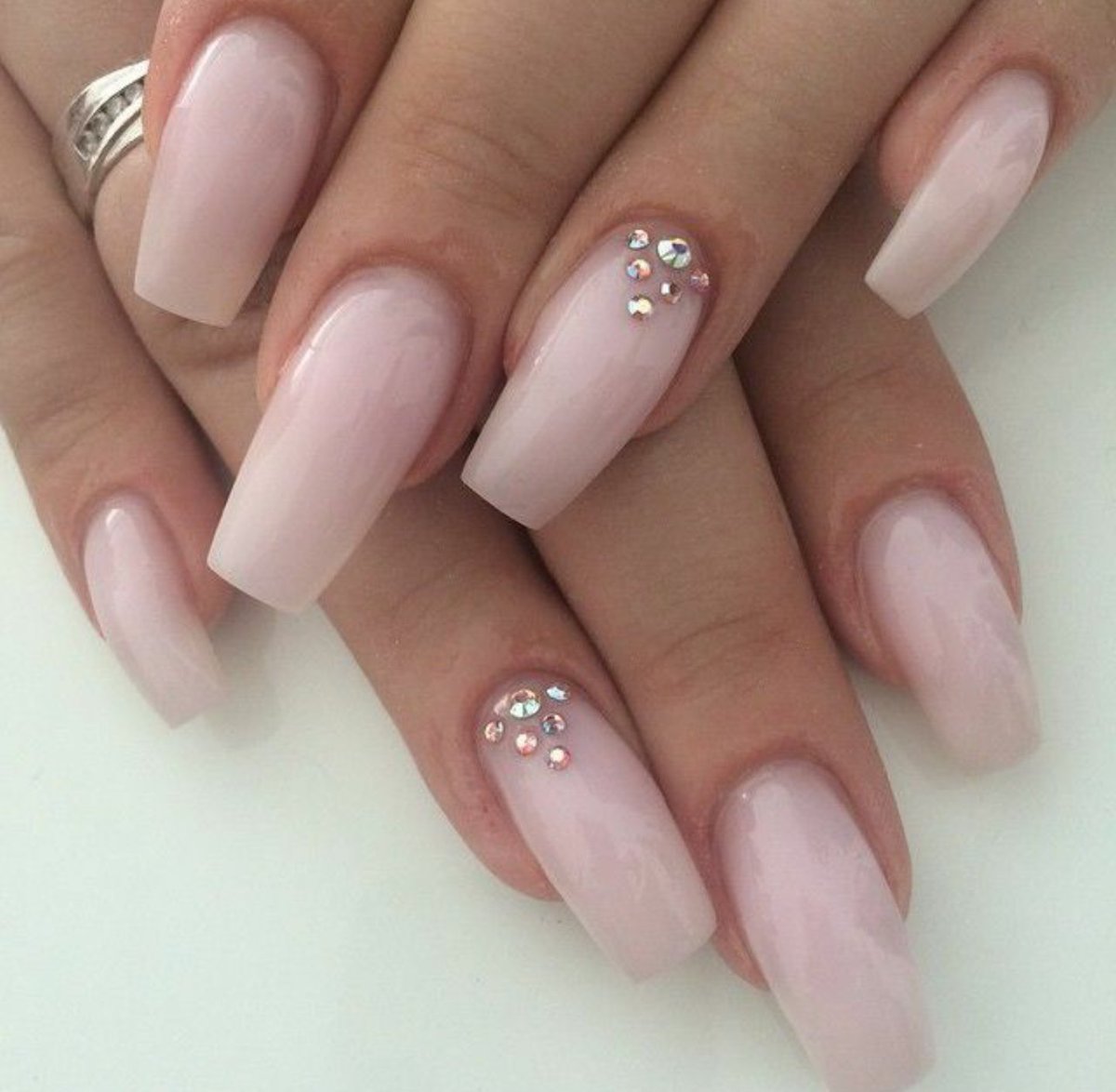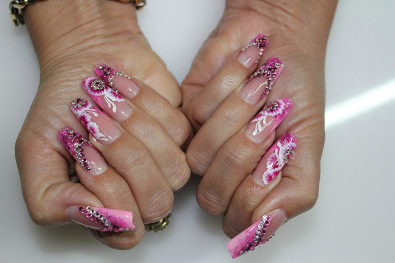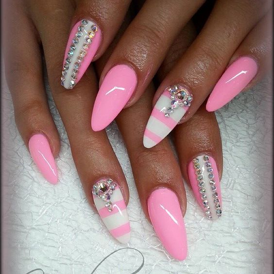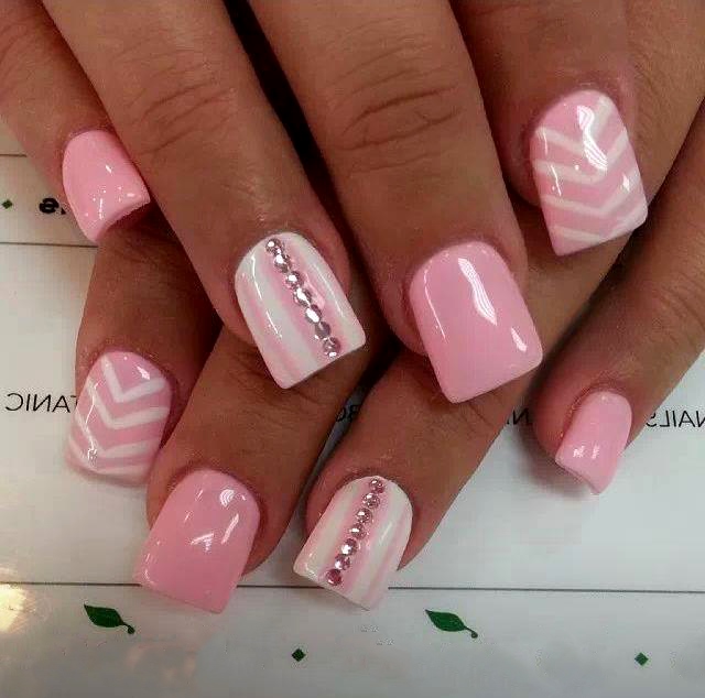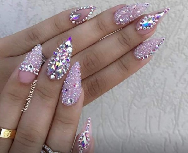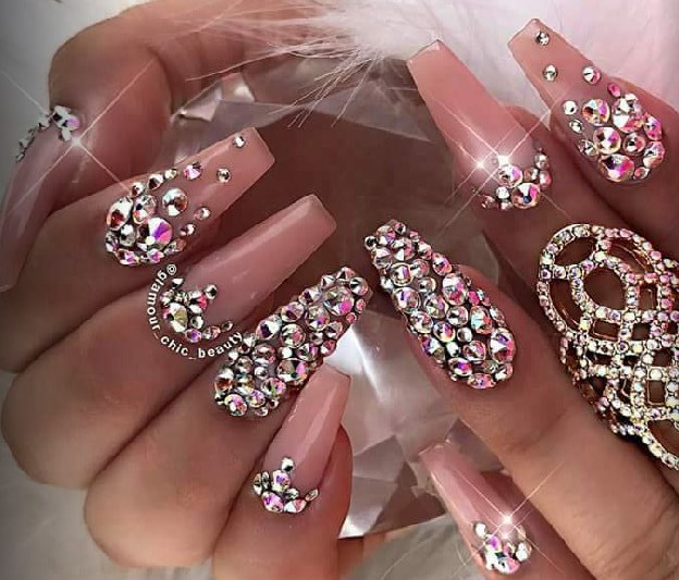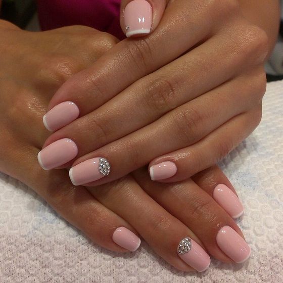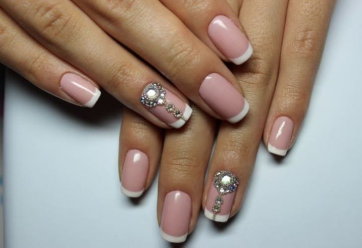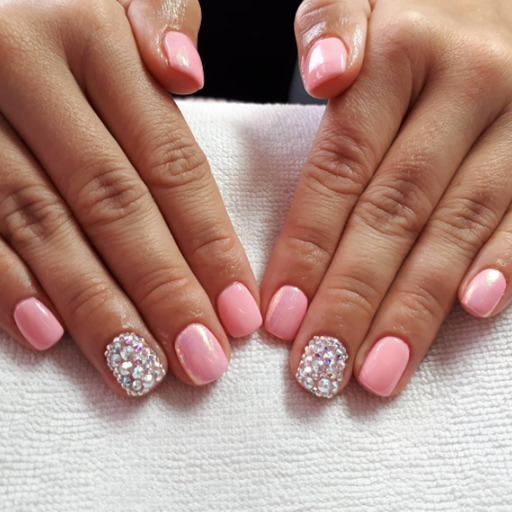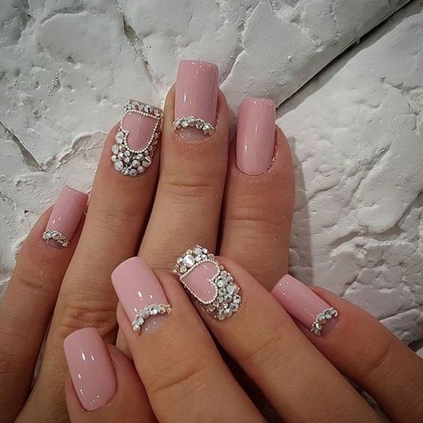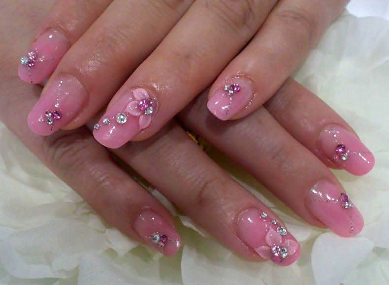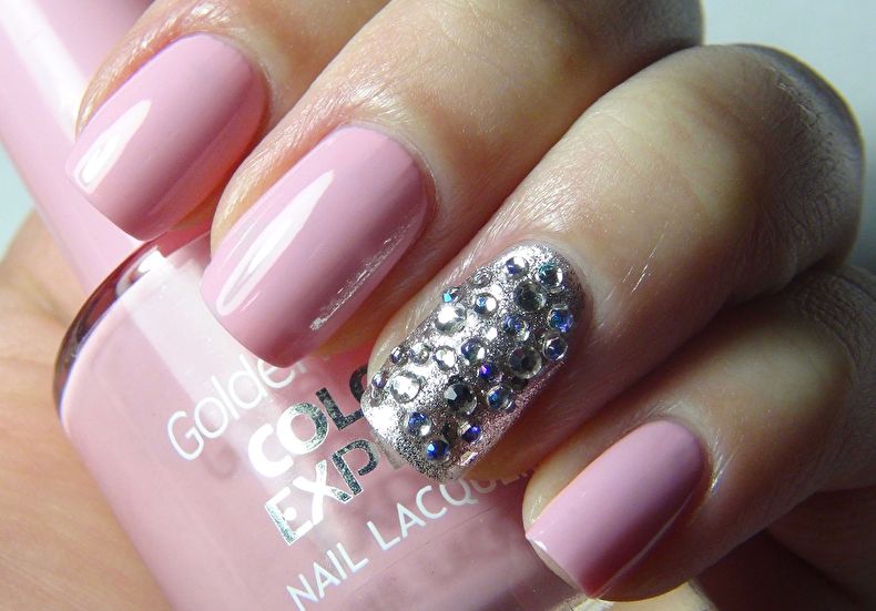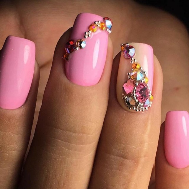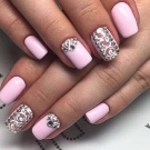Pink manicure with rhinestones.