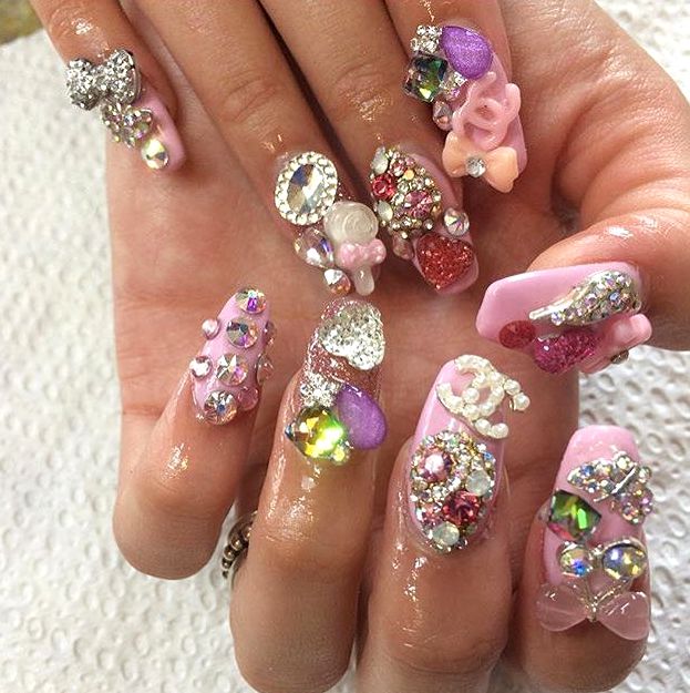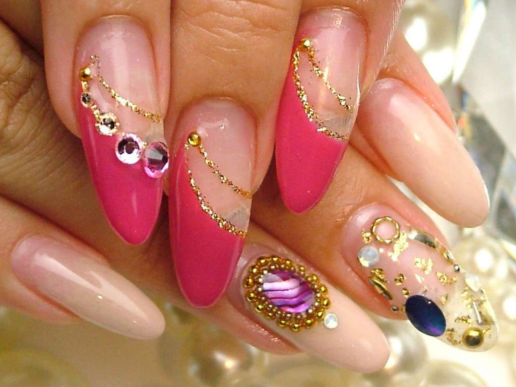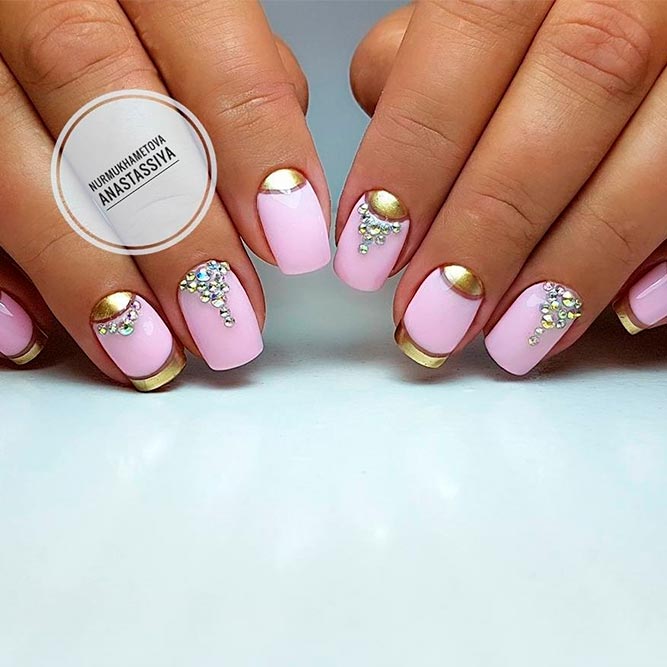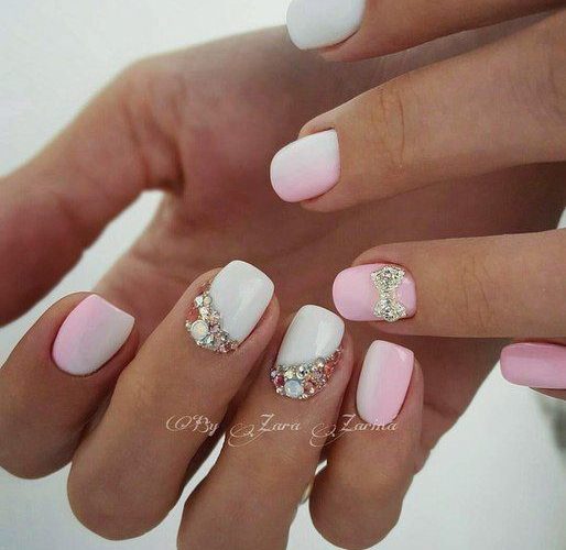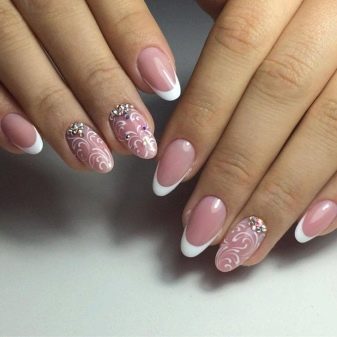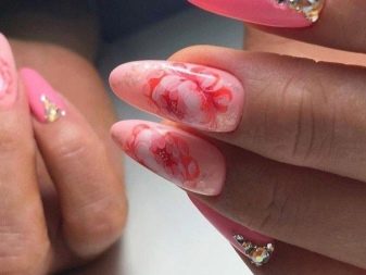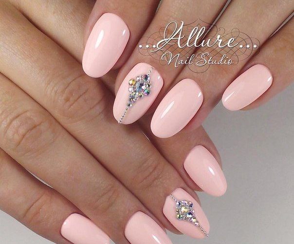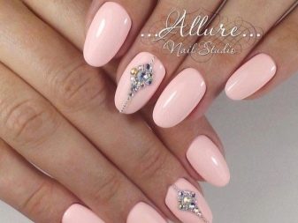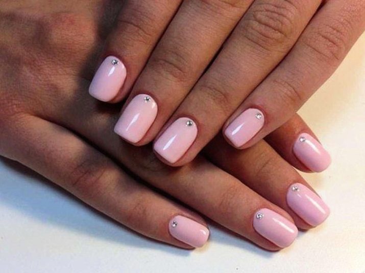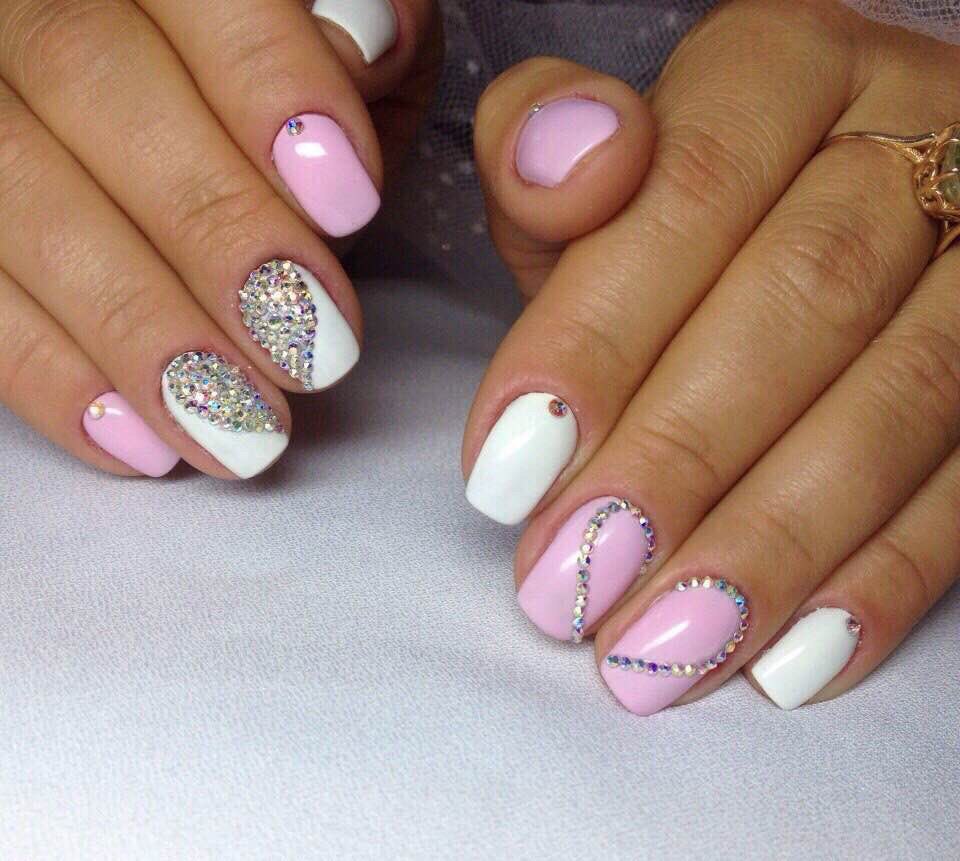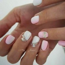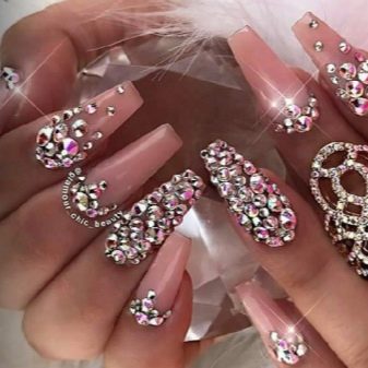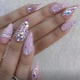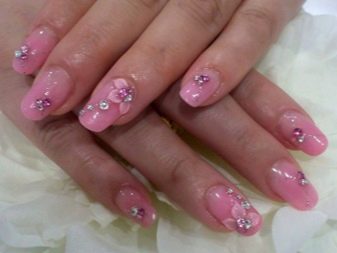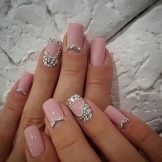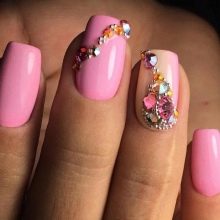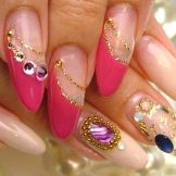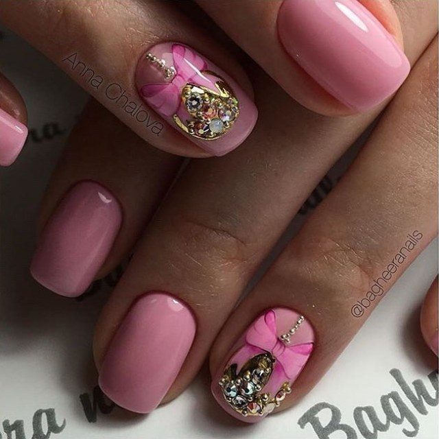 It seems that pink manicure with rhinestones is already a complete version. But, trying to show their individuality and trying to create a unique design, many beauties are not limited to just pebbles.