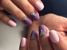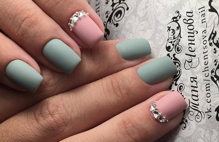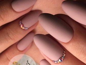 In recent years, it has become particularly relevant. The complete lack of gloss is successfully compensated by rhinestones. Their glow on a matte surface looks very elegant and restrained. In this case, you can either attach them in a single order, or create a drawing.