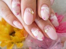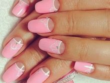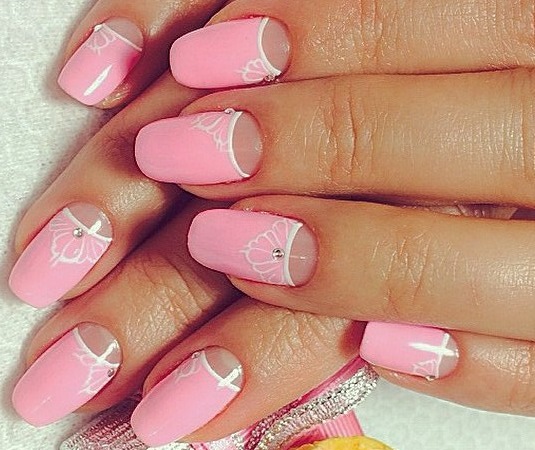 Pink manicure with lace.