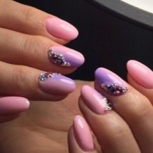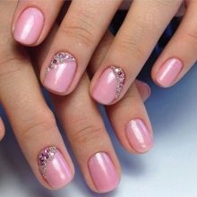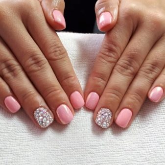 Pink manicure with rhinestones can be very gentle and unobtrusive, and bright, even catchy. It all depends on the chosen shade and design. Let's try to figure out which of the options is suitable for every day, and which one would be appropriate only with evening dress.