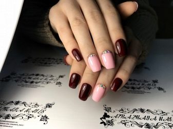 Wishing to give uniqueness and originality to their own manicure, modern beauties skillfully combine it with other shades and colors. At the same time, rhinestones very harmoniously complement the image without overloading it. Variations of duets can be arbitrarily many, among which there are both classical and extraordinary.