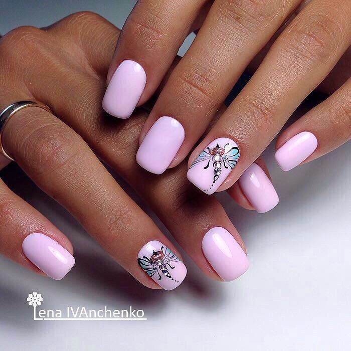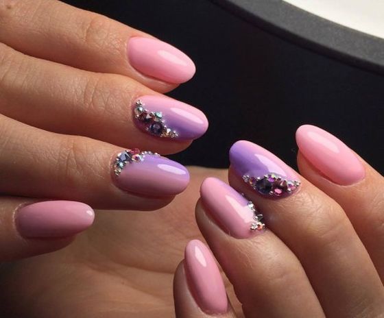 The combination of pink, purple and rhinestone is suitable for creating spring or summer "bow". It is bright enough and cheerful, while it can be combined with a variety of summer looks (be it a light sundress or a light office suit).