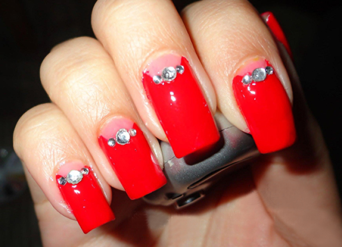 Whatever technique and combination of varnishes you choose, The arrangement of rhinestones at the same time has several main trends: