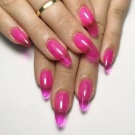 This method of staining nails completely over the entire area involves the use of different types of pink varnish. It will look great on the nails of the hands a matte, glossy, mirror type of coating, as well as a cat's eye and a chameleon.