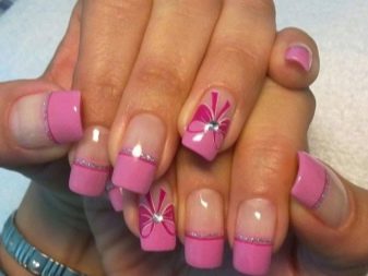 Pink manicure decoration should be moderate, since the abundance of decorative elements can ruin the entire aesthetics of even an expensive lacquer coating. Therefore, even if you really want to stick huge crystals to all your nails and surround them with rhinestones, you should not do this: there are lots of ways to become less special.