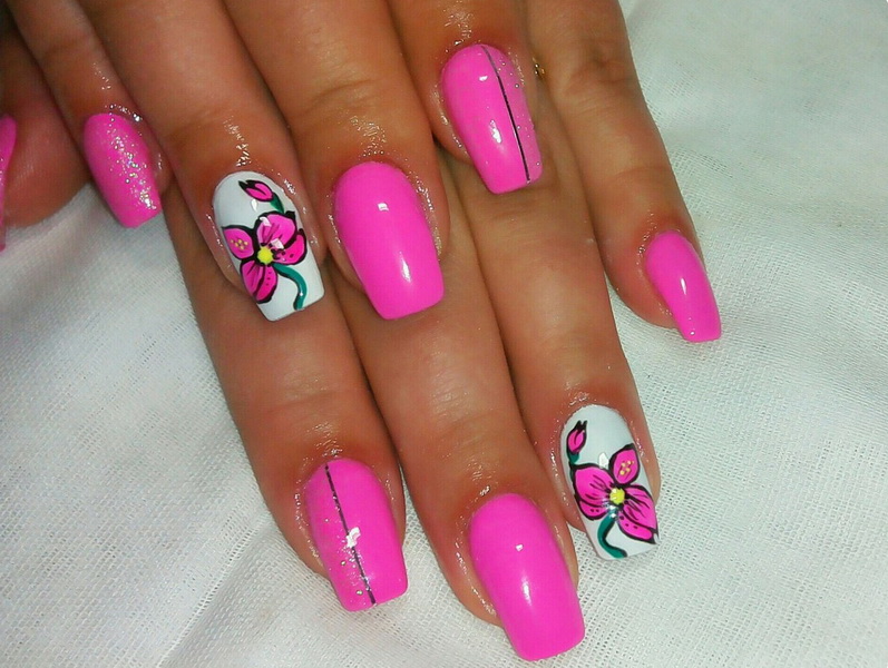 How to perform a bright pink manicure with artistic painting, see the next video.